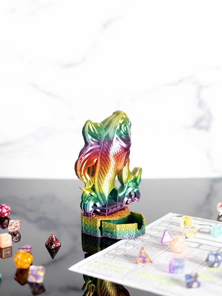 Unit price perLooking for a tiny and easy to transport tower? This Koi Fish tower is a perfect option! The dice tower will arrive unprimed and unpainted in the filament color of your choice. The 100% size is made to fit a standard 16mm die. For larger dice the 130% size should suit your needs. Choose the tray option that best suits your personal style. They are all interchangeable.