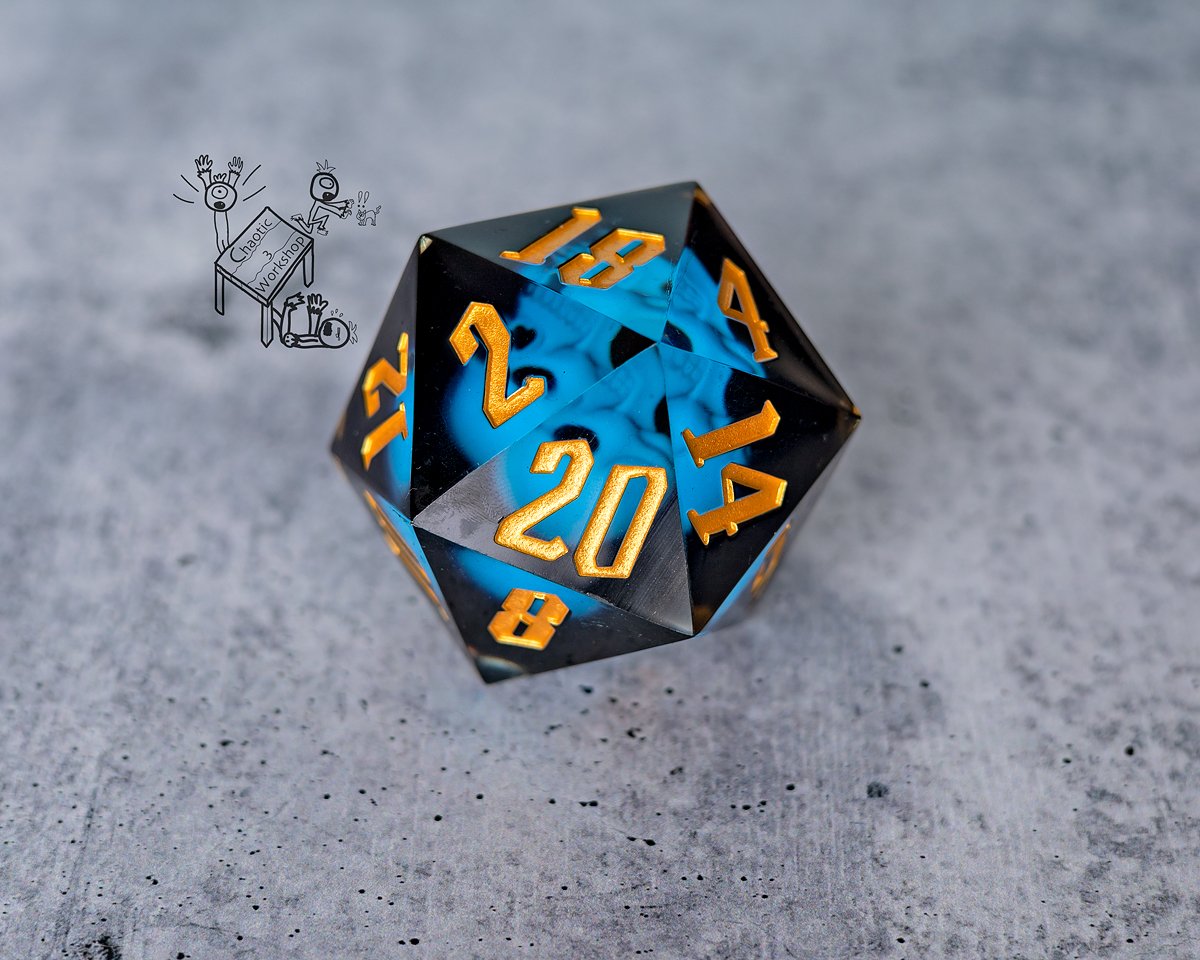 Handcrafted, sharp edge resin dice are hand polished to keep their beautiful sharp edges. This d20 is infused with a glow in the dark skull! Because sharp edge dice are not tumbled, they are often considered more precise than mass produced plastic dice. Standard size d20 included in image for scale. Each die will come with it’s own padded box for safe keeping.