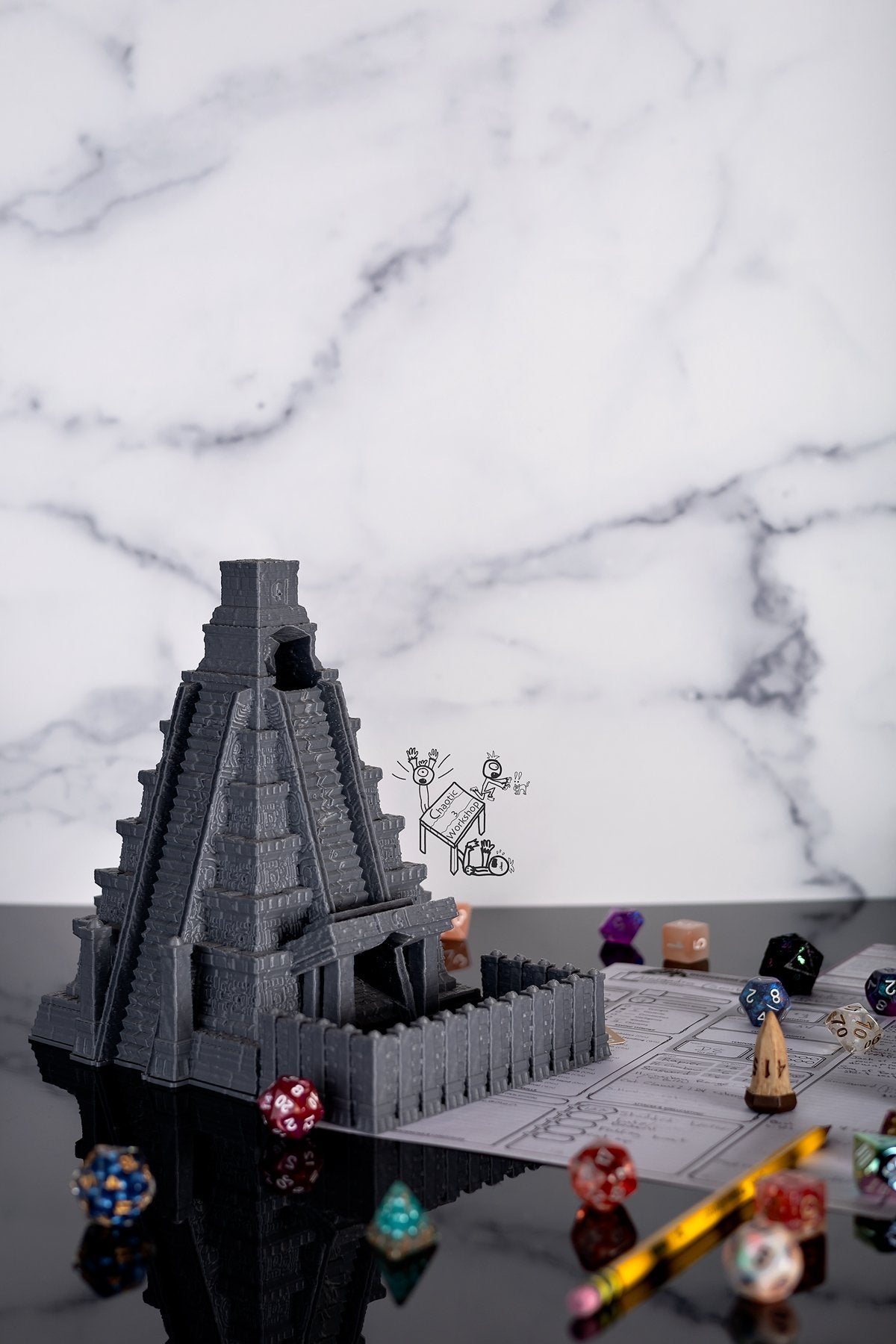 Unit price perSo what do you all think: Ancient Mayan temple off the beaten path? The dice tower will arrive unprimed and unpainted in the filament color of your choice. The 100% size is made to fit a standard 16mm die. For larger dice the 120% size should suit your needs.