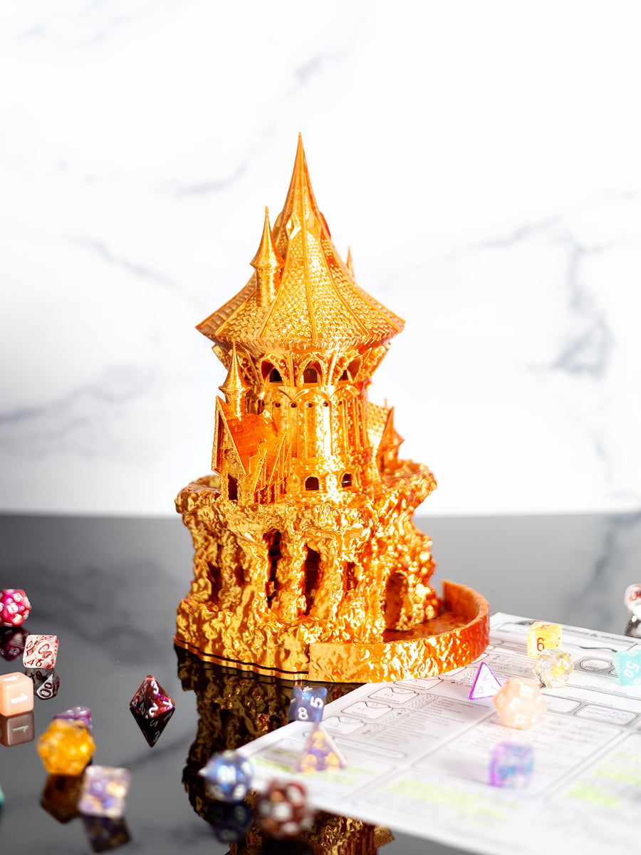 Unit price perThey have no gods. They work magic, and think they are gods themselves. The dice tower will arrive unprimed and unpainted in the filament color of your choice. The 100% size is made to fit a standard 16mm die. For larger dice the 120% size should suit your needs.