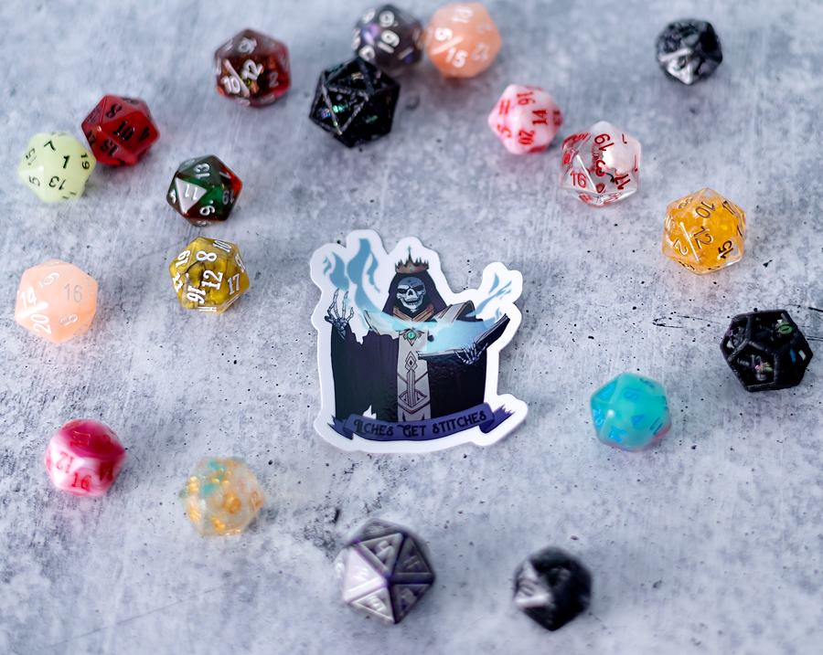 Liches Get Stiches Tabletop RPG Monster Sticker - 3"