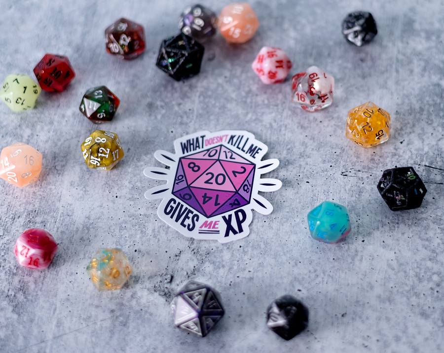 What Doesn't Kill You Gives You XP Dice Sticker - 2.5"
